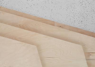 Фанера — это прочный и легкий материал, который не коробится, подходит для сложных форм и дает чистую, минималистичную поверхность. Его получают, склеивая шпон в перекрестном направлении — материал получается более экологичным и доступным по цене, чем цельный массив, а также — простым в монтаже. В архитектуре и дизайне фанеру используют как конструкционный материал, для отделки, встроенной мебели и временных конструкций. Часто выбирают березовую фанеру: она прочнее, светлее по цвету и имеет выразительную текстуру.