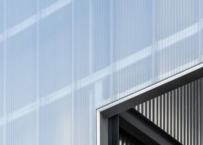 В Бразилии архитекторы из studio mk27 использовали поликарбонат для фасада мебельного шоурума. Это гибкое пространство выполняет роль павильона: здесь могут проходить выставки, работать приглашенные художники или функционировать магазин. Здание собрано из клееных деревянных рам, нижняя половина которых обшита металлическими панелями, верхняя — поликарбонатом: за счет этого павильон кажется парящим. Днем мягкий свет проникает внутрь, а в интерьере отражаются тени деревьев, вечером павильон привлекает внимание с улицы. С помощью поликарбоната архитекторы сформировали легкую и закрытую оболочку, которая сохраняет визуальную проницаемость в плотной застройке.