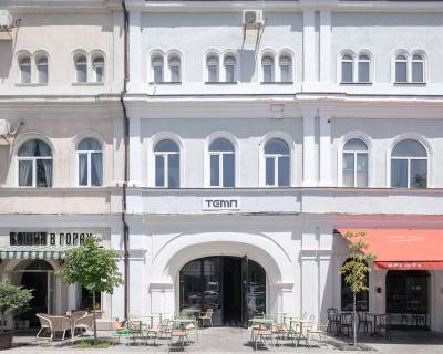 Занимая вестибюль на первом этаже, второй этаж с многосветным пространством бывшего кинозала, камерные пространства третьего этажа, а также кровлю, Новый «Темп» вмещает в себя огромное число функций. Это кафе, шоурумы локальных брендов, книжный магазин, коворкинг и выставочное пространство.