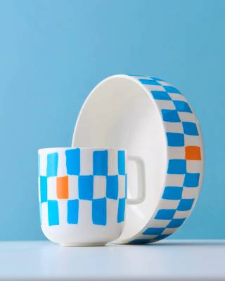 Сет керамики DVKB для Яндекс Лавки с ярким паттерном.