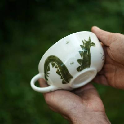 Полуфарфоровая чашка от керамической мастерской Лукоморье расписана вручную керамисткой Ольгой Емельяновой.