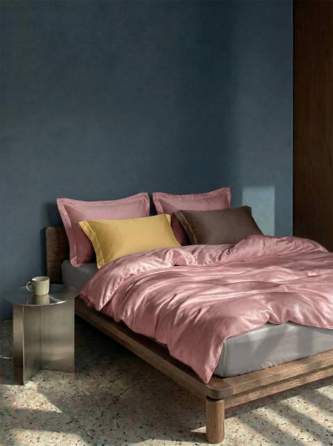 Сатин удерживает пигмент плотнее других хлопковых переплетений, поэтому цвета получаются насыщенными и глубокими. Генеративная среда позволила показать сочетания оттенков без ограничений реального интерьера и визуального шума посторонних объектов.